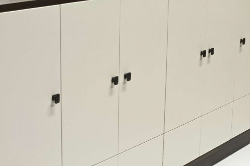 Shown in Walnut with a dark chocolate finish and painted doors.